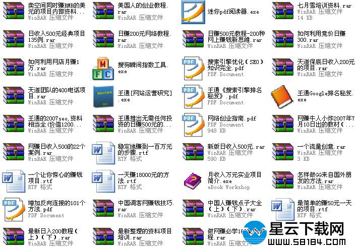 以下几十套资料都是本站收集及高价购买的网上赚钱资料,全部资料几千万字,下载到电脑即可查看.